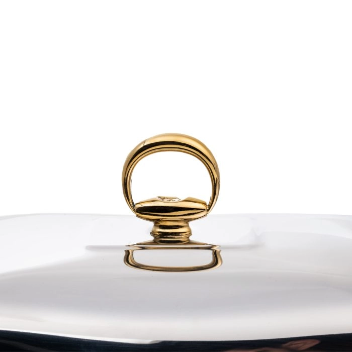 پایه استیل طلایی آن نیز استحکام و پایداری بیشتری به ظرف میبخشد. این طراحی نه تنها به زیبایی ظروف اضافه میکند، بلکه به شما این امکان را میدهد که این سوفله خوری را بهطور ایمن و راحت حمل و جابجا کنید. همچنین، استفاده از این ظرف در کنار سایر سوفلههای مشابه از همین مدل، به میز پذیرایی شما ظاهری هماهنگ و جذاب میدهد.